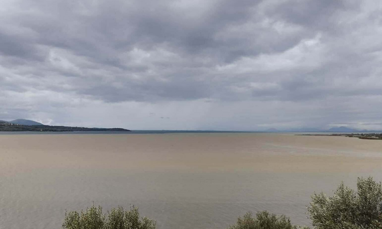 Η αδιάκοπη βροχόπτωση που έφερε η «Adel» γέμισε τα ρέματα που καταλήγουν στη θάλασσα, με αποτέλεσμα ο Αμβρακικός Κόλπος να γεμίσει λάσπη και να «αλλάξει χρώμα».
